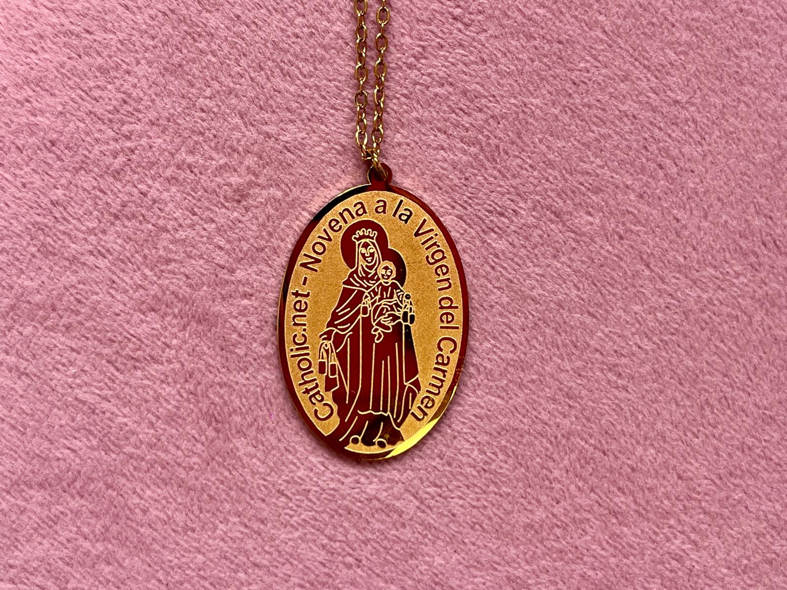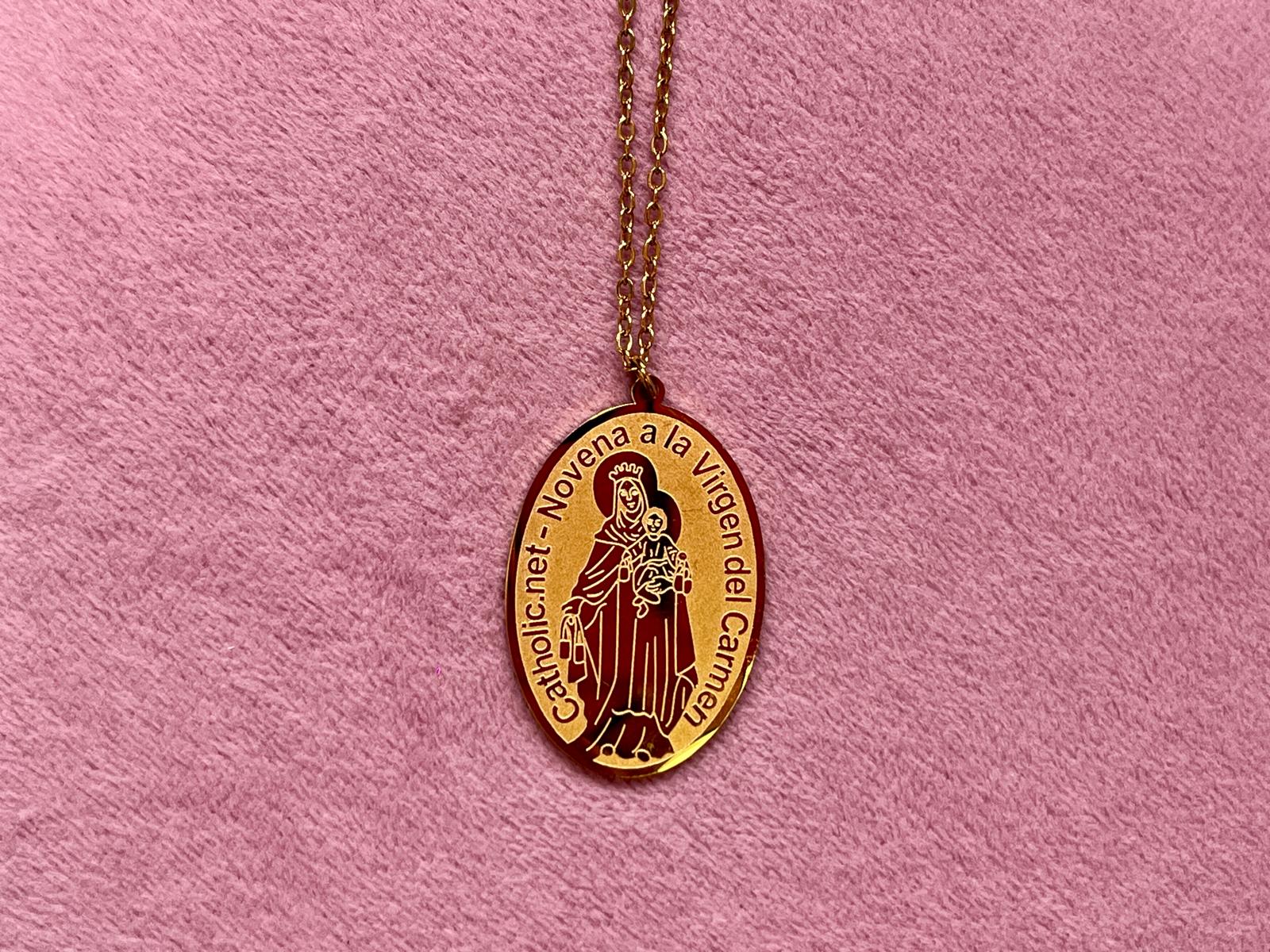Medalla Ovalada Virgen del Carmen – “Novena a la Virgen del Carmen” (Acero Dorado)