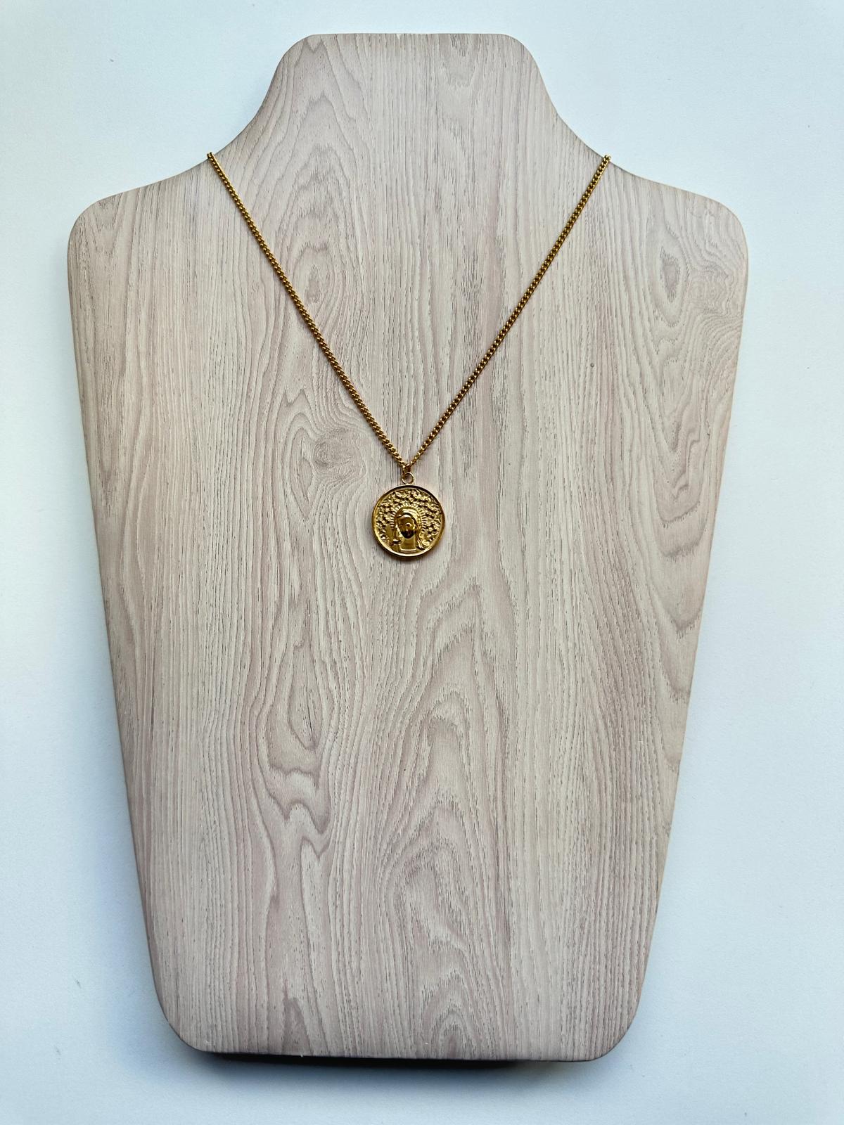 - Este collar está hecho de acero inoxidable chapado en oro dorado.