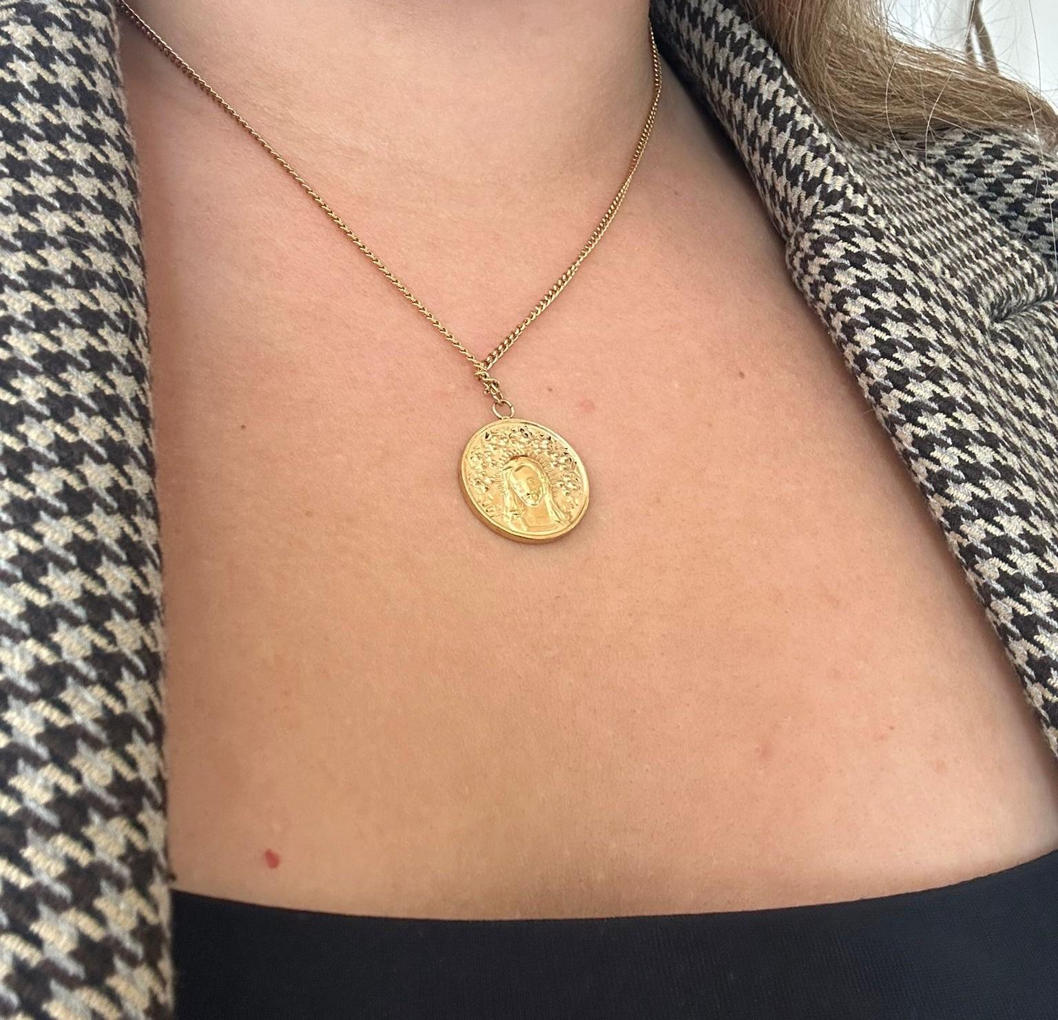Este collar Virgen de la Alegría es una elección perfecta para aquellos que buscan alivio espiritual.