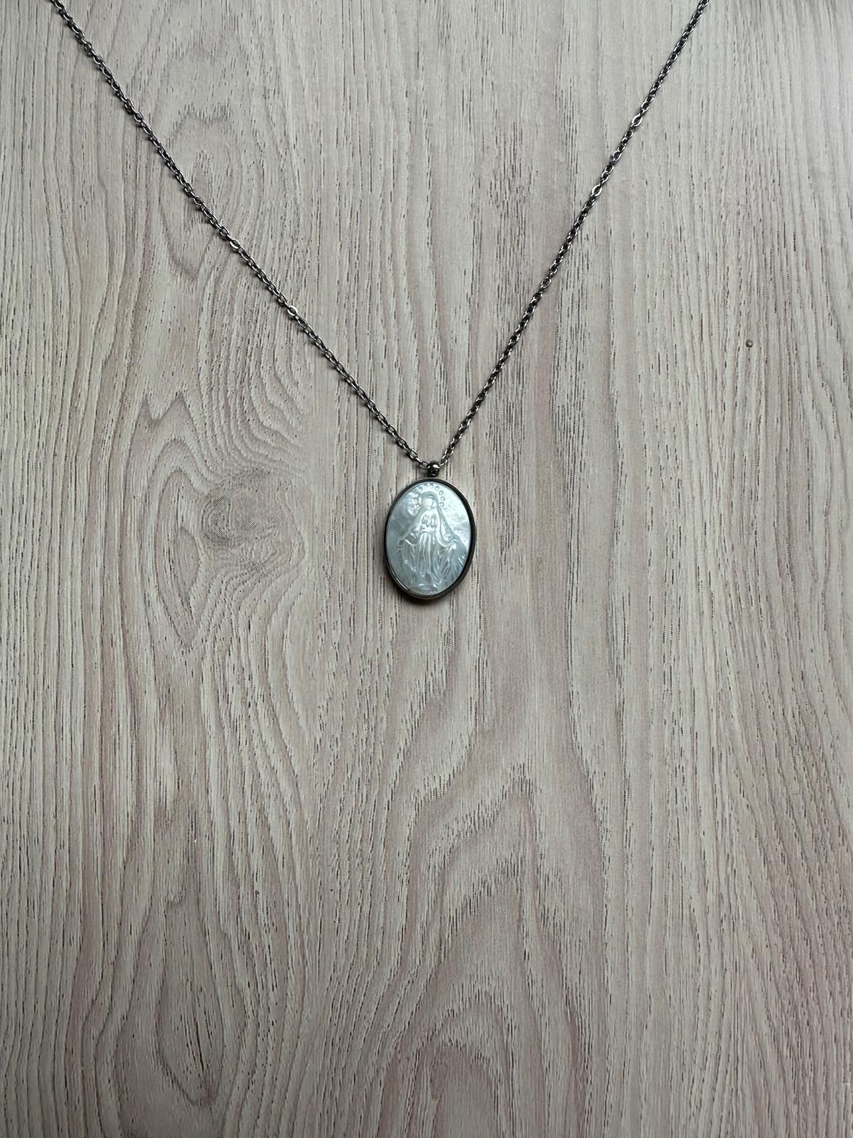 Medallón de la Milagrosa en nácar con acabado en acero inoxidable de alta calidad. Este diseño clásico combina la elegancia del nácar natural con la durabilidad del acero inoxidable quirúrgico, resistente a la corrosión y al desgaste cotidiano. Ideal para quienes buscan una pieza de devoción con presencia y refinamiento. El contraste entre la luminosidad del nácar y el brillo del metal crea una joya versátil, perfecta tanto para uso diario como para ocasiones especiales. Una inversión en una pieza atemporal que trasciende tendencias.