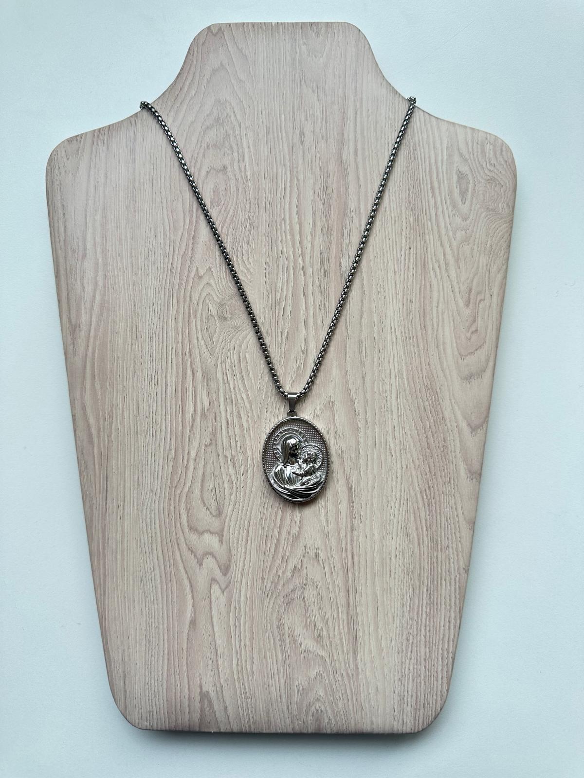 Medallón devocional de acero inoxidable con acabado plateado que representa la Virgen de la Inmaculada Concepción. Elaborado con materiales de alta durabilidad, resiste el paso del tiempo y el uso diario sin perder su brillo. El diseño detallado captura la serenidad de la imagen mariana, convirtiéndolo en una pieza de valor espiritual y estético. Ideal para llevar como amuleto protector o regalar a personas de fe. Su composición en acero inoxidable garantiza resistencia a la corrosión y facilita el mantenimiento. Una joya que combina tradición religiosa con calidad artesanal.