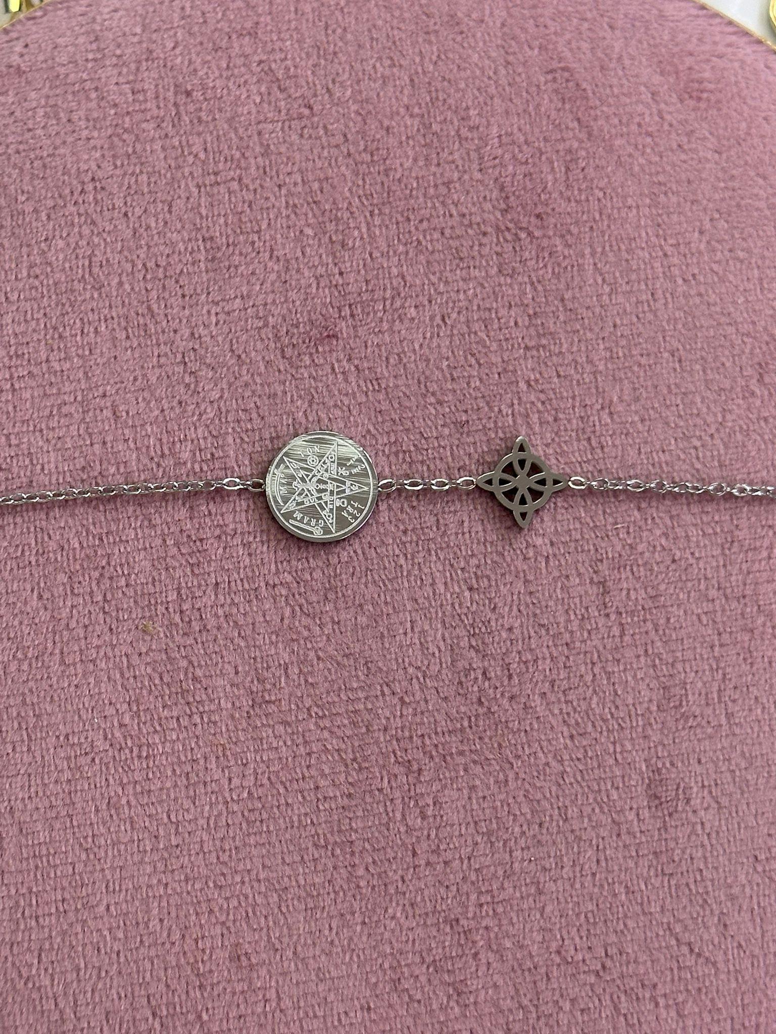 Pulsera Doble Protección Nudo de Bruja y Tetragramatón