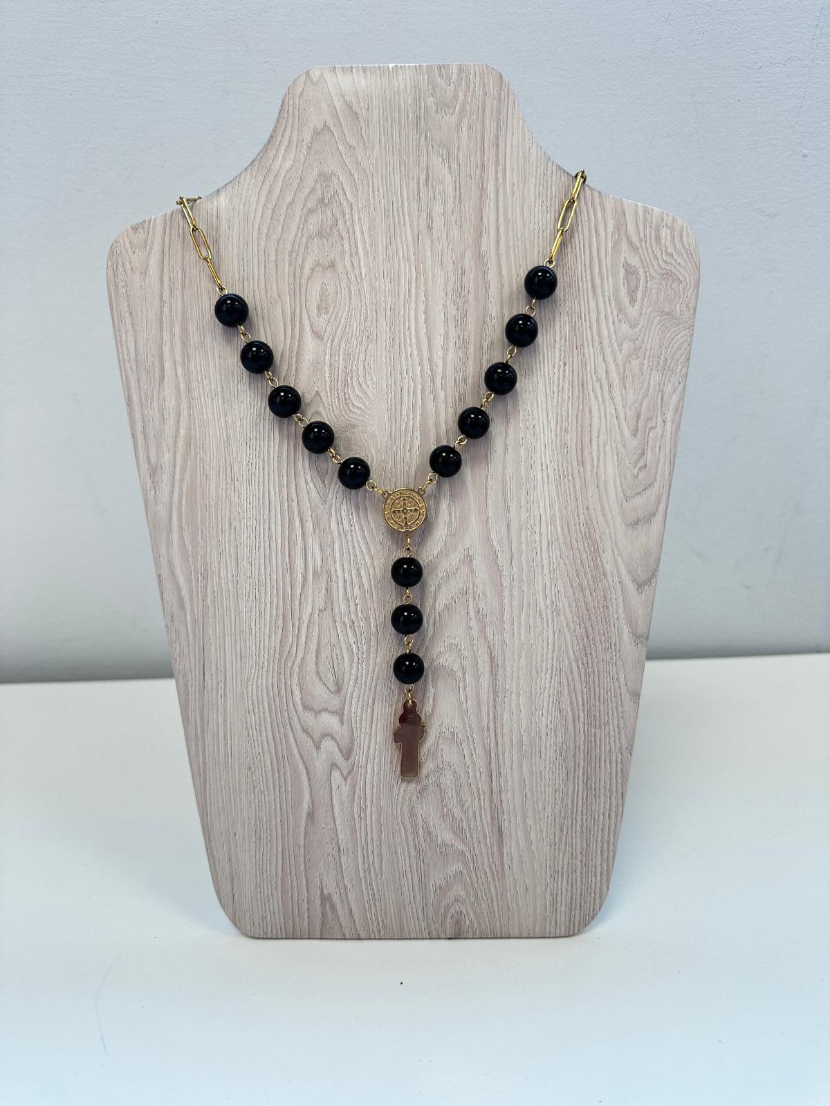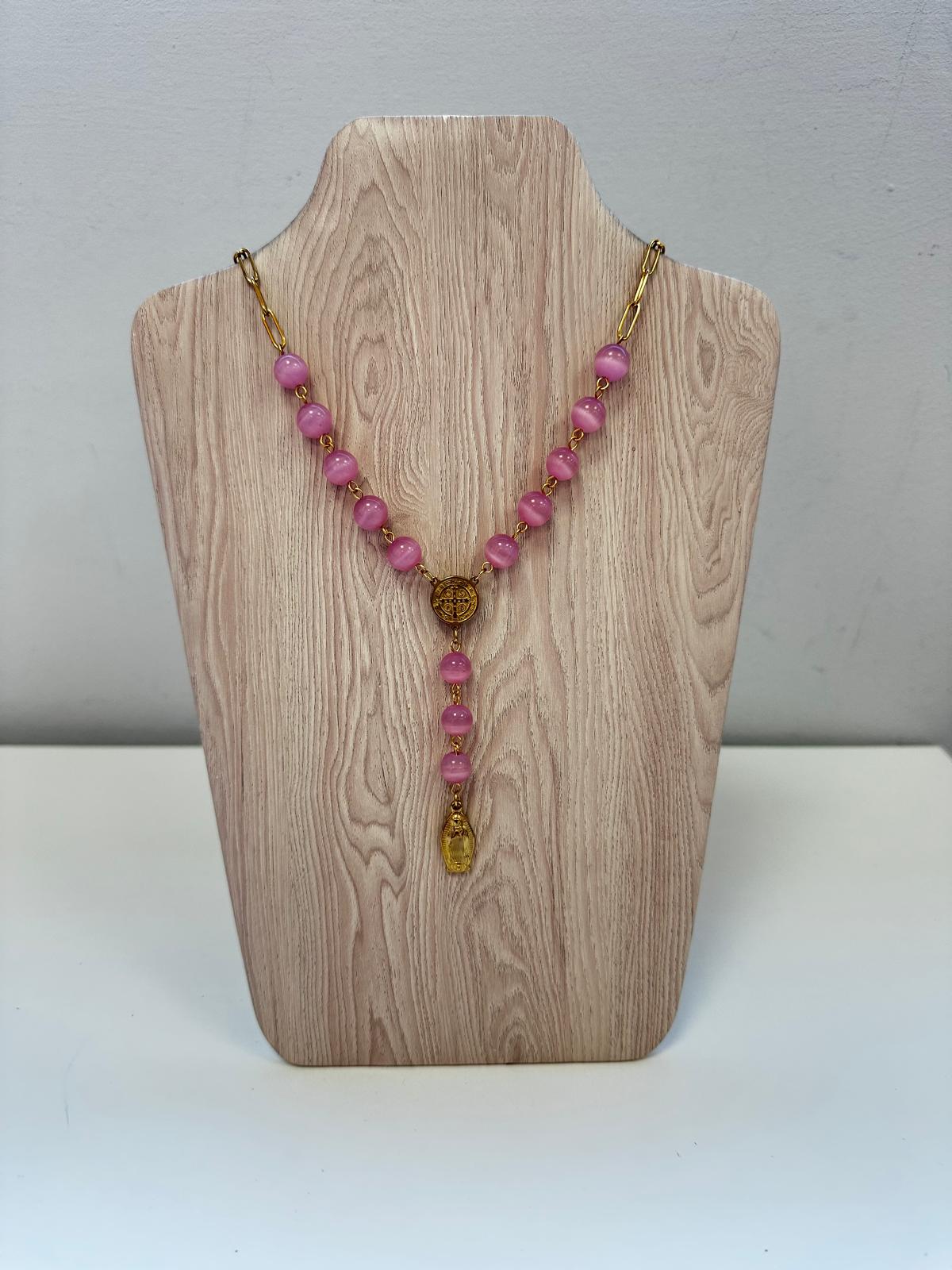 Rosario artesanal confeccionado en acero inoxidable de alta calidad con acabado dorado que garantiza durabilidad y resistencia al paso del tiempo. Cada cuenta está elaborada con piedras naturales de colores vibrantes, cuidadosamente seleccionadas para crear una composición armoniosa. El diseño combina tradición espiritual con elegancia contemporánea, ofreciendo una pieza versátil tanto para práctica devocional como para uso como accesorio de moda. La estructura en acero inoxidable asegura que el rosario mantenga su brillo dorado sin oxidación, convirtiéndolo en una inversión duradera para colecciones de joyería religiosa o espiritual.